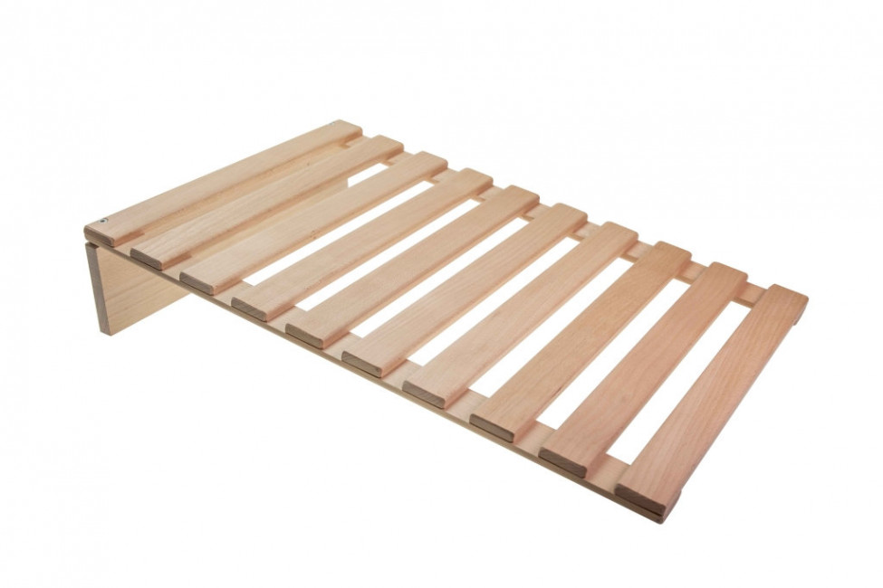 Fabriqué en lames de hêtre arrondies (10 x 40 mm), ce plateau incliné en bois combine robustesse et esthétique naturelle.