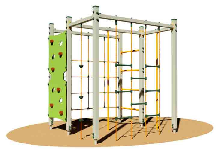 Cette pyramide à grimper maximise les possibilités de jeu dans un encombrement réduit, offrant aux enfants de 3 à 12 ans un défi adapté à leur développement moteur.