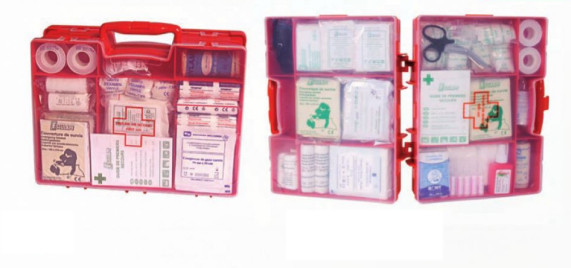 Cette trousse de secours comprend une valise de premiers soins d'urgence très complète, préconisée sur les chantiers par l'OPPBTP.