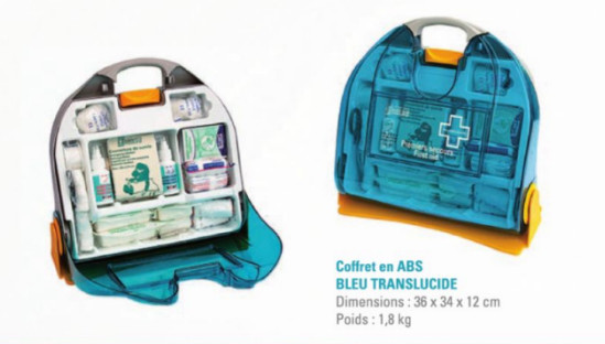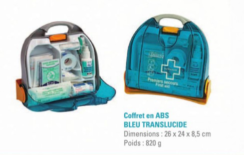 Cette trousse de secours en ABS bleu est idéale pour les bureaux, les administrations et les métiers à risques limités.