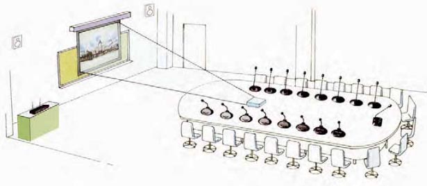 - La station de réception possède 3 canaux (incluant le président). Le président contrôle l’ensemble de la réunion par son pupitre.