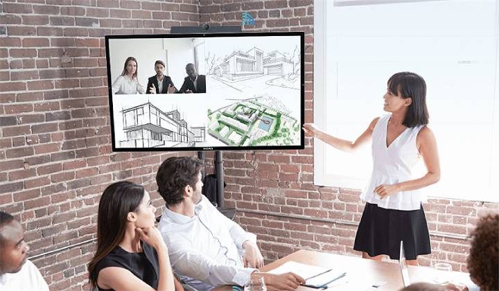 La barre vidéo se connecte facilement via USB à un PC Windows ou Mac et est certifiée pour les principales plateformes de visioconférence, telles que Zoom et Microsoft Teams.