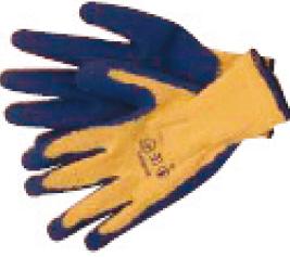 - Gant bleu tricoté avec enduit partiel de caoutchouc naturel sur les doigts.