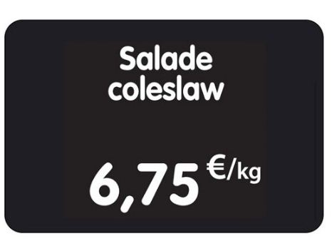 Une étiquette prix qui indique aux clients les tarifs, ou autres informations sur les produits commercialisés.