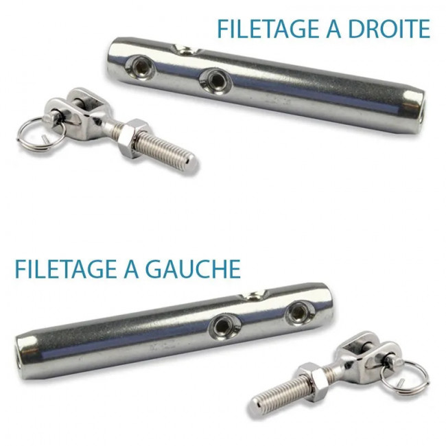 Composé de 2 tendeurs et de 2 chapes en inox, ce système est adapté aux configurations de câbles tendus.
