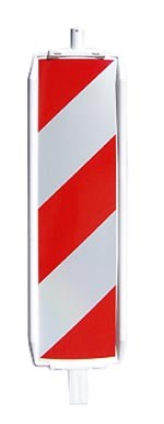 - Balise plastique type 60 W, film classe 2, hachuré, rouge/blanche, embout 60 x 60 mm, double, face, côté droit/gauche, réfléchissante.