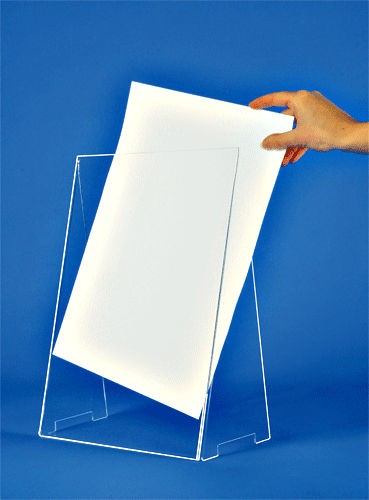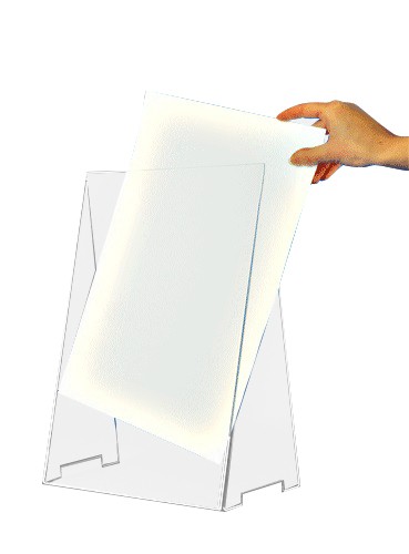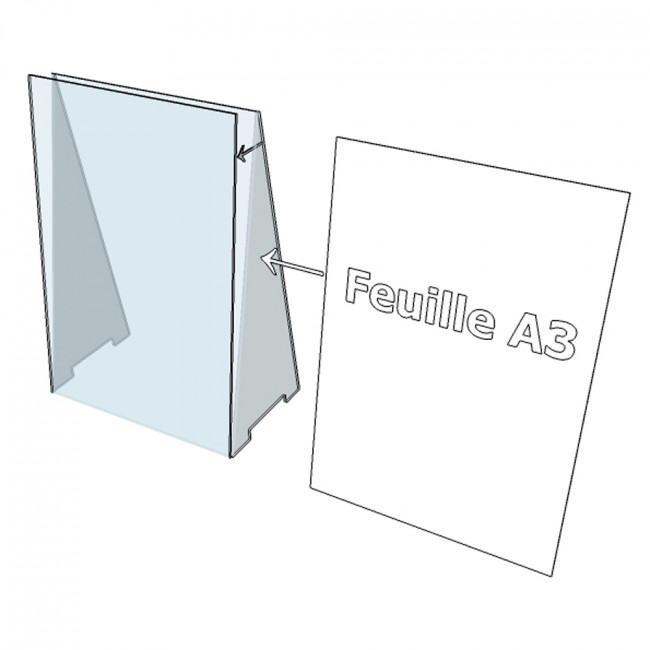 Ce chevalet en plexiglas permet de présenter vos grands formats A3 à la verticale.