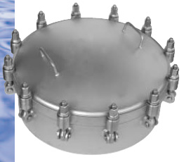 • Ecrous en inox forme haute • Joint silicone • Sans charnière, avec 2 poignées • Cadre épaisseur 6 mm longueur 150 mm • Cape du boulon basculant en inox 1.4462 • Finition microbillée, soudures non arasées à partir DN 600, soudures non arasées, décapée