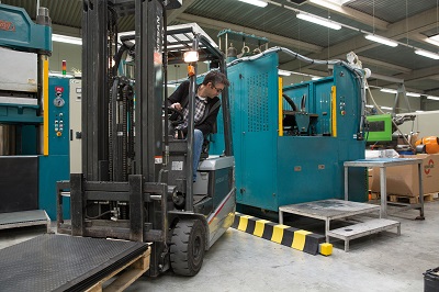 Cette butée de sol PARGOM® stoppe les engins de manutention et ainsi protège les matériels et les murs.