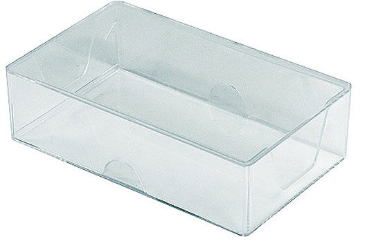 Forme rectangulaire - Matière : polystyrène cristal de 3 contenances différentes : 100 - 250 et 500 cartes de visite