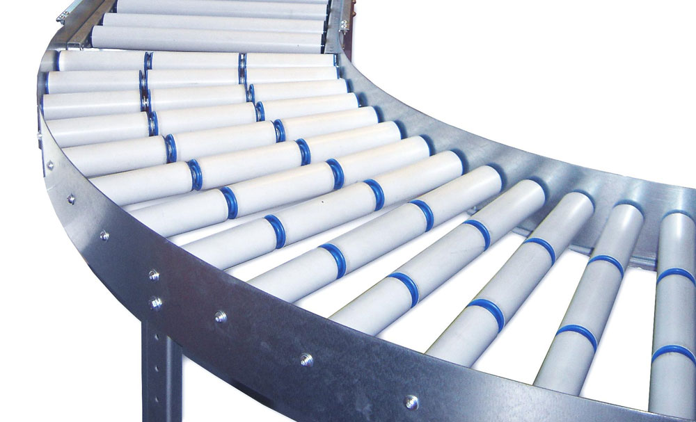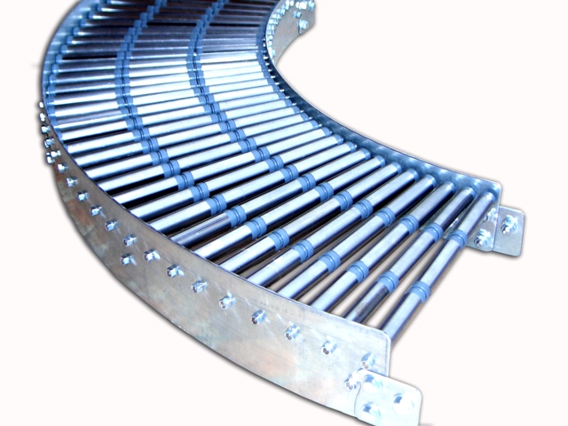 Ce convoyeur à rouleaux a pour rôle de déplacer vos charges dans des courbes.