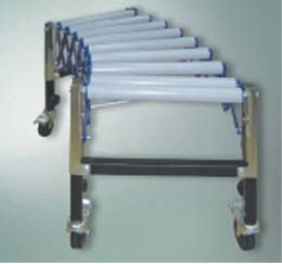 Transporteur extensible à rouleaux ou galets en modules de 1,30m qui permettent son assemblage rapide pour obtenir le développement total souhaité.