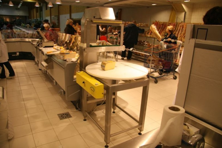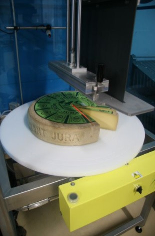 Ce trancheur mécanique permet de couper des meules de fromages sans effort et avec une qualité de coupe parfaite.