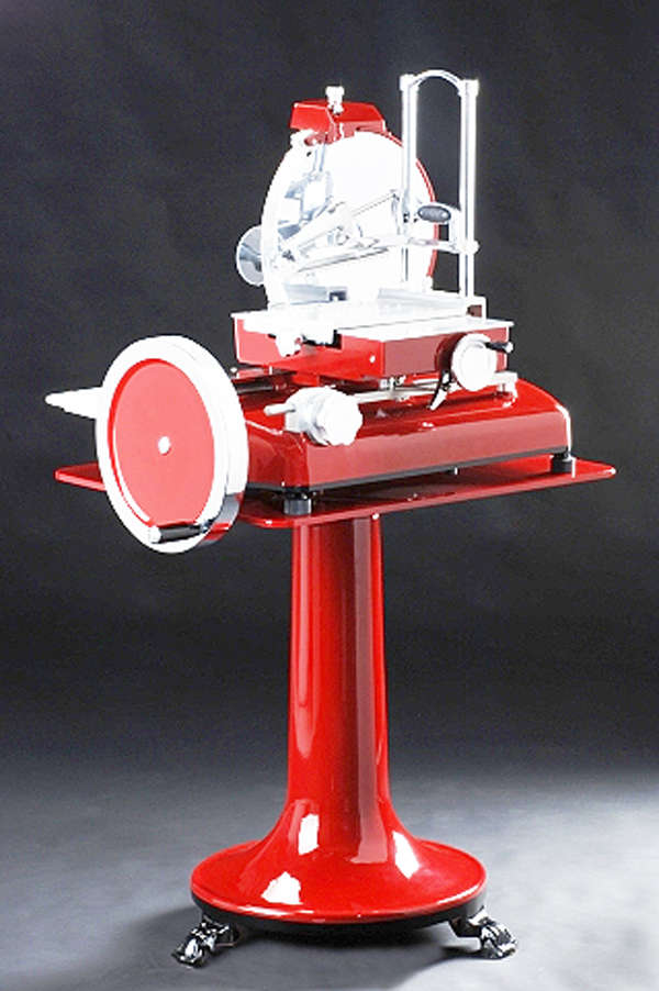 La trancheuse manuelle est l'outil parfait pour les grandes pièces de charcuterie, grâce à son diamètre de lame acier inoxydable de 350 mm elle possède une surface de coupe de 270 x 240 mm ainsi qu'un réglage d'épaisseur de 0 à 2,5 mm.
