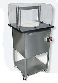 La trancheuse est dotée d’une commande bi-manuelle, et d’un plateau tournant avec blocage pour plus de sécurité.