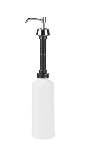 Capacité : 0,5 ou 1 litre Manuel, doses de 1 ml Pour savon liquide Réservoir : ABS blanc ou Acier inoxydable Encastré sur plan de travail.