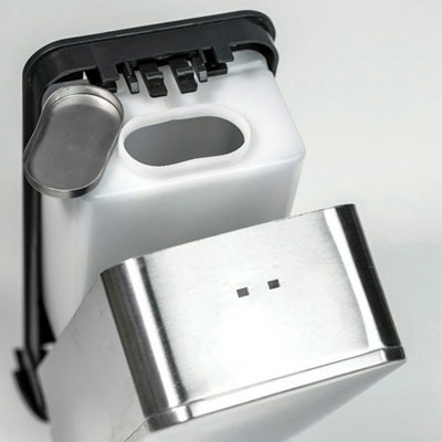 Fabriqué avec un fond en ABS et une façade en inox AISI 304 brossé, ce distributeur offre à la fois robustesse et élégance.