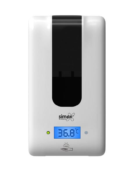 Distributeur automatique de savon ou gel hydroalcoolique avec mesure automatique de la température sans contact.