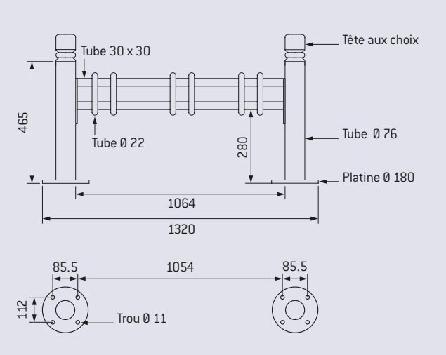 Conçu pour être fixé sur platines, il s'intègre parfaitement dans tout environnement grâce à ses pommeaux décoratifs au choix (City, Agora, Boule, Inox brossé).