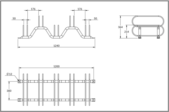 Support à vélo cintré galvanisé - 5 places - L.1200 mm