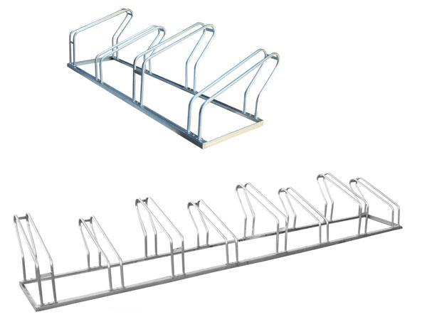 supports horizontaux munis d'arceaux en acier à fixer au sol ou au mur.