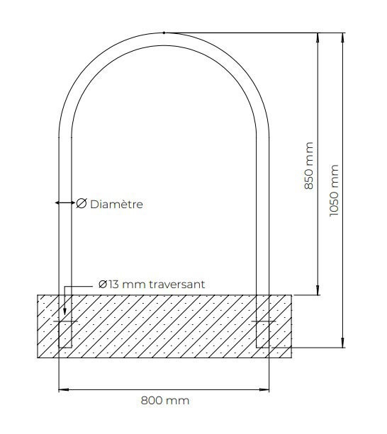 Cette technique de pose consiste à ancrer l'arceau directement dans le sol par coulage de béton, créant ainsi une liaison indissociable entre le support et son support.