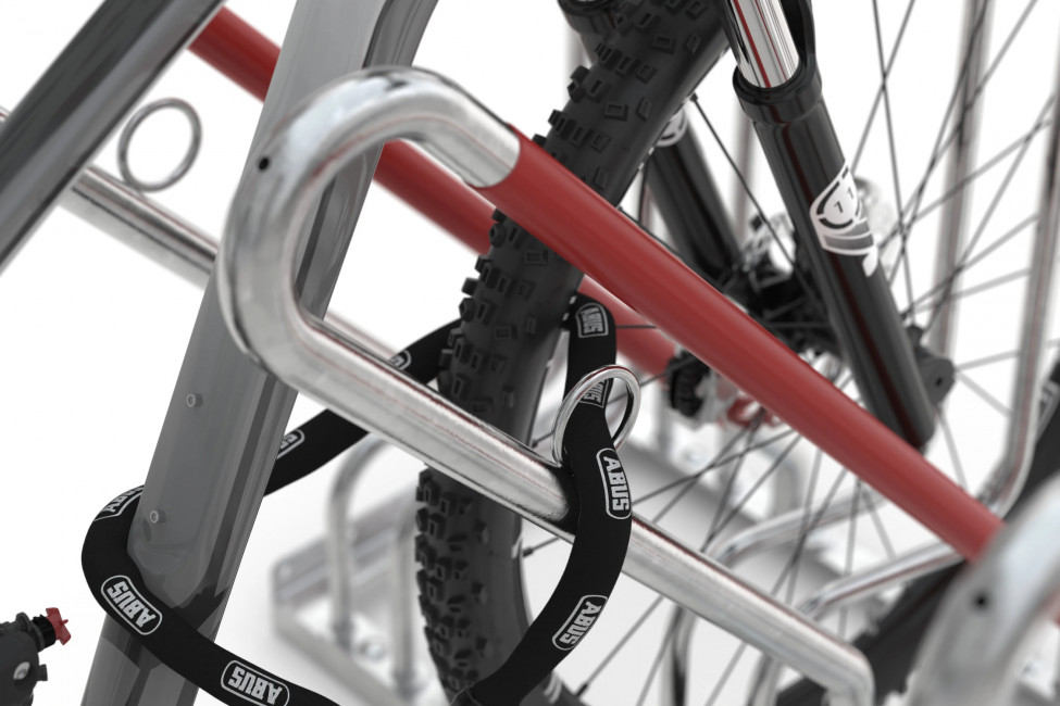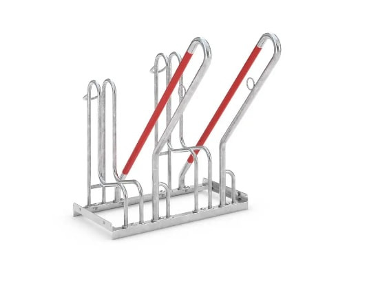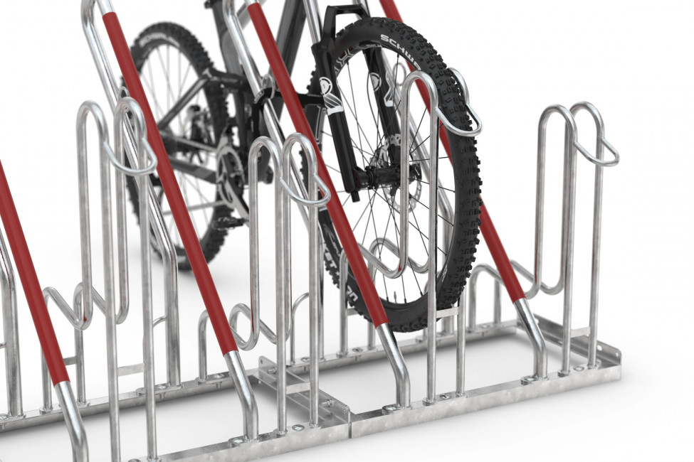 Les arceaux de stationnement verticaux et les reposes cadre gainés préservent l'intégrité des vélos en évitant les rayures.