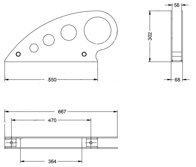 - Dimensions : L 666 x l 68 x H 302 mm