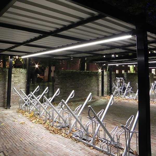 L'intégration d'un arceau de sécurisation pour deux places permet d'attacher le cadre du vélo et ainsi de renforcer la stabilité et la protection contre le vol.