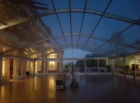 La différence avec les tentes de réception s’opère au niveau de l’esthétique et de la hauteur du chapiteau. A la différence d’un toit à la coupe bi-pente classique, le toit du dôme propose une légère courbe à hauteur du faitage.