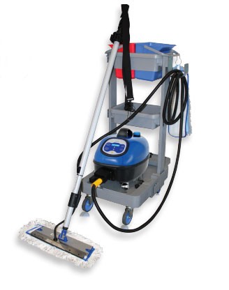 Le chariot nettoyeur vapeur avec balai est conçu pour un traitement de surface et lavage de sol efficaces et économiques à la fois car ne nécessitant que peu de consommation d'eau.