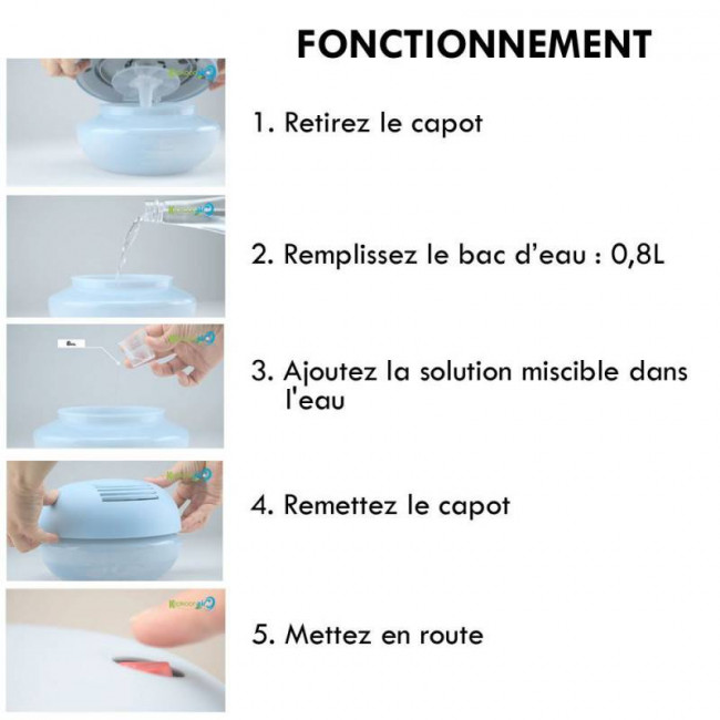 - Un purificateur d'air pour des surfaces jusqu'à 75m² + désinfectant dépolluant concentré.