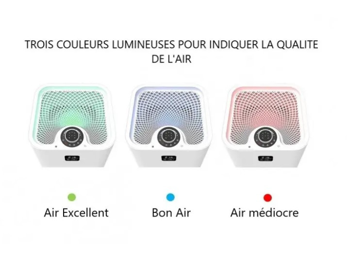 L'affichage LED intuitif vous informe instantanément du niveau de pollution grâce à des indicateurs colorés, vous permettant d'adapter le fonctionnement selon vos besoins.