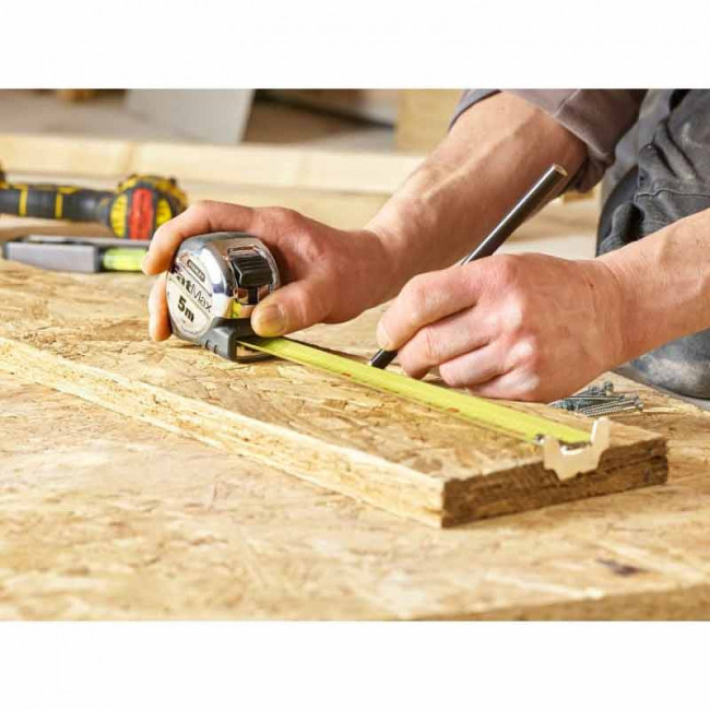 Grâce à sa largeur de 32 mm, le ruban Blade Armor FatMax® Pro offre une portée directe sans décrochage allant jusqu'à 4 mètres. Cette caractéristique permet aux utilisateurs de prendre des mesures longues en toute simplicité, sans avoir à se soucier du maintien du ruban.