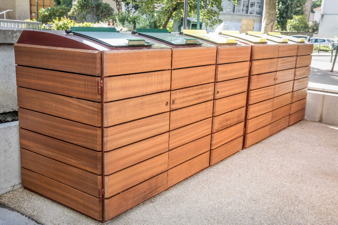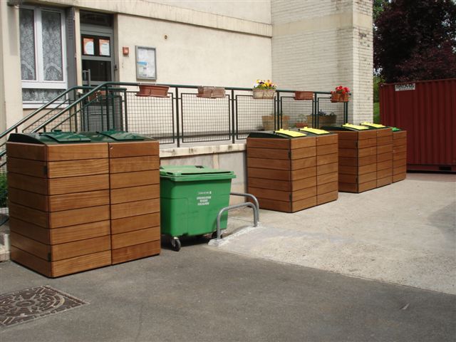 Nous souhaitons un cache esthétique pour nos conteneurs jaunes avec une ouverture pratique pour mettre les ordures