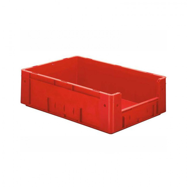 Le bac Euronorme à ouverture frontale est proposé au format norme Europe 600 x 400 mm, compatible avec la plupart des installations de stockage, convoyeurs à rouleaux et palettes Europe.