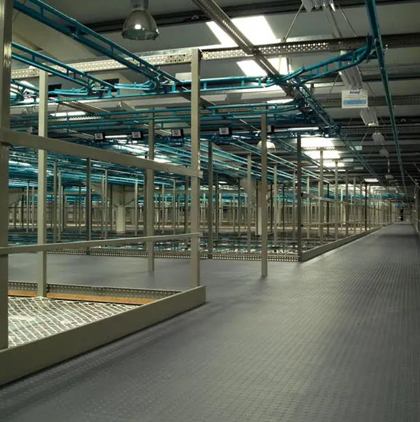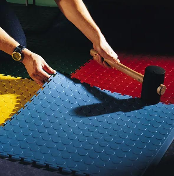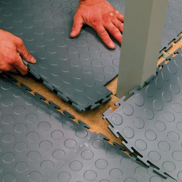 Ces dalles en PVC recyclable permettent de protéger l’intégralité du sol d’un entrepôt industriel, tout en évitant de peindre
