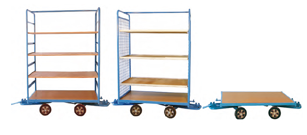 Cette remorque peut attelée en train jusqu’à 5 pièces, elle facilite le transport des charges lourdes que l’opérateur ne peut supporter d’un endroit à un autre en toute sécurité.