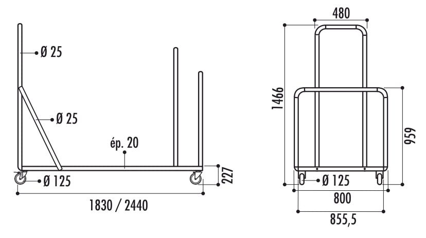 Chariot pour tables rectangulaires