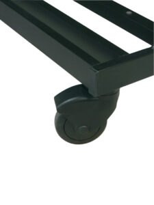 Le chariot est équipé de roulettes multidirectionnelles de 10 cm avec bandage caoutchouc silencieux, vous permettant de déplacer vos tables sans effort, même sur les surfaces délicates.