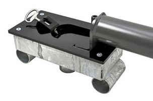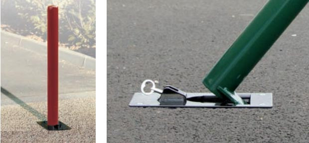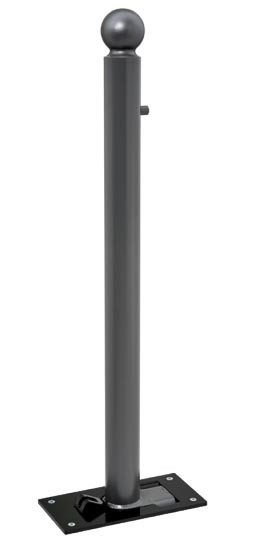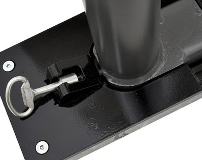 Son système de verrouillage à clé triangle permet une fixation rigide en position haute et empêche l'accumulation de débris lorsque le potelet est en position basse.