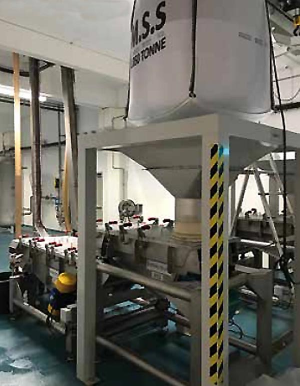 Notre système de déchargement big bag s’adapte facilement à différentes tailles et formes de sacs et intègre des filtres anti-poussière qui protègent l’opérateur pendant le déversement dans la trémie.