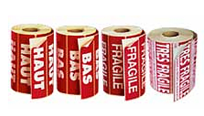 je souhaiterais avoir un devis pour des étiquettes d"emballage HAUT BAS FRAGILE écriture blanche fond rouge long 12 cm haut 5cm. Merci de me faire parvenir vos propositions.