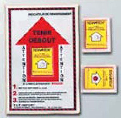 Doté d’une étiquette de positionnement, cette dernière rappelle la procédure à suivre lors de la réception d'un colis muni d'un indicateur déclenché.