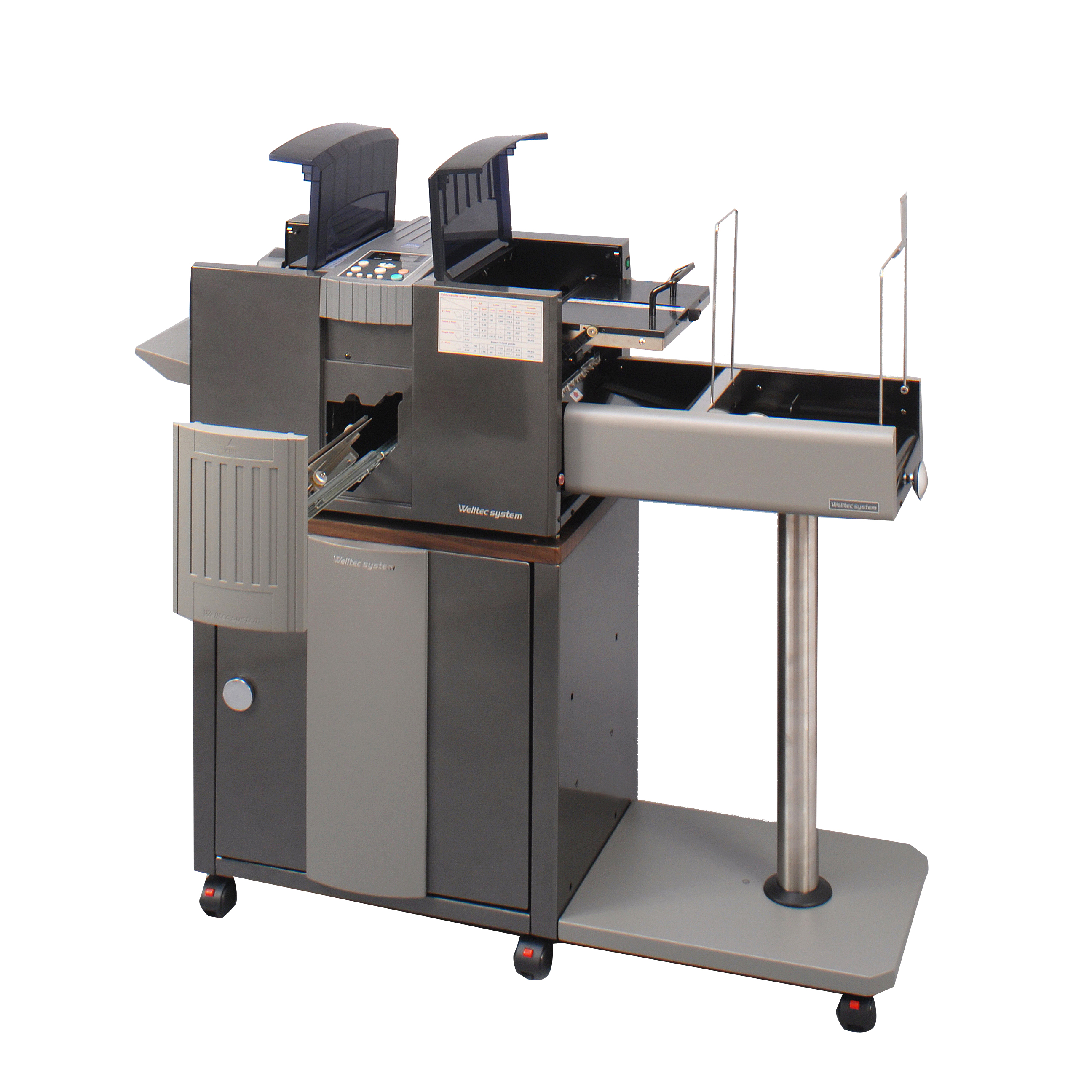 - Système de traitement de courrier (feuille/feuille) compact, permettant une production facile, rapide et sûre de plis scellés mono-feuilles.