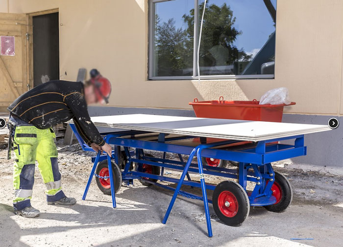 C’est un ensemble de 2tréteaux tubulaires, stables et rigides, complétant le chariot à arceaux, et ils sont indispensables pour pouvoir déplacer en toute sécurité les plaques de plâtres, d’une capacité maximale de 650 Kg, sans pour autant la détériorer.