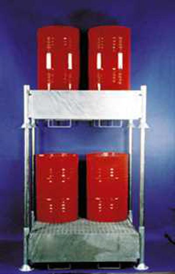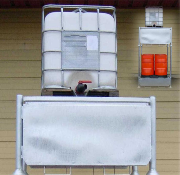 Cette solution de stockage accepte 4 fûts ou 1 cuve de 1000 litres (selon modèle).