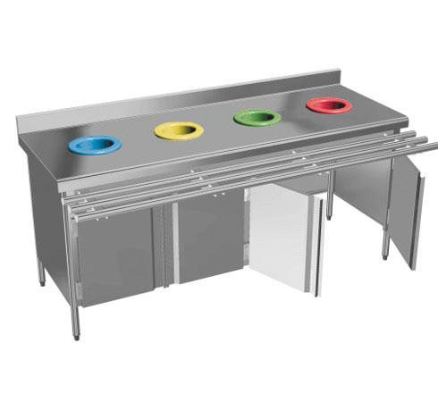 Ce meuble de pré tri est construit en acier inoxydable AISI 304L et est disponible en 3 modèles : 2, 3 ou 4 trous vide ordures.
