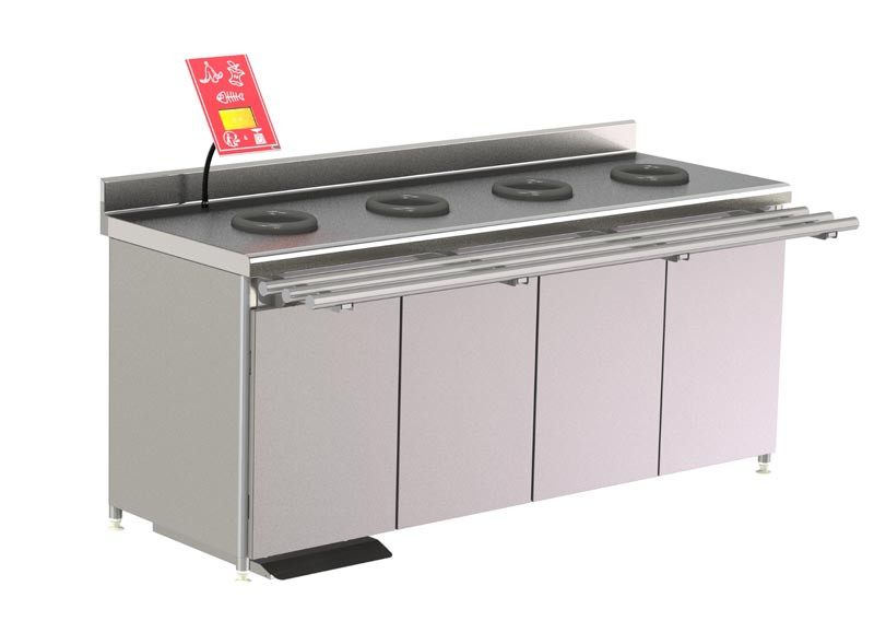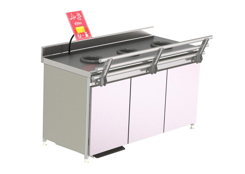 Notre meuble de débarrassage avec pesée intégrée transforme le tri des déchets en expérience pédagogique interactive dans votre cantine scolaire.