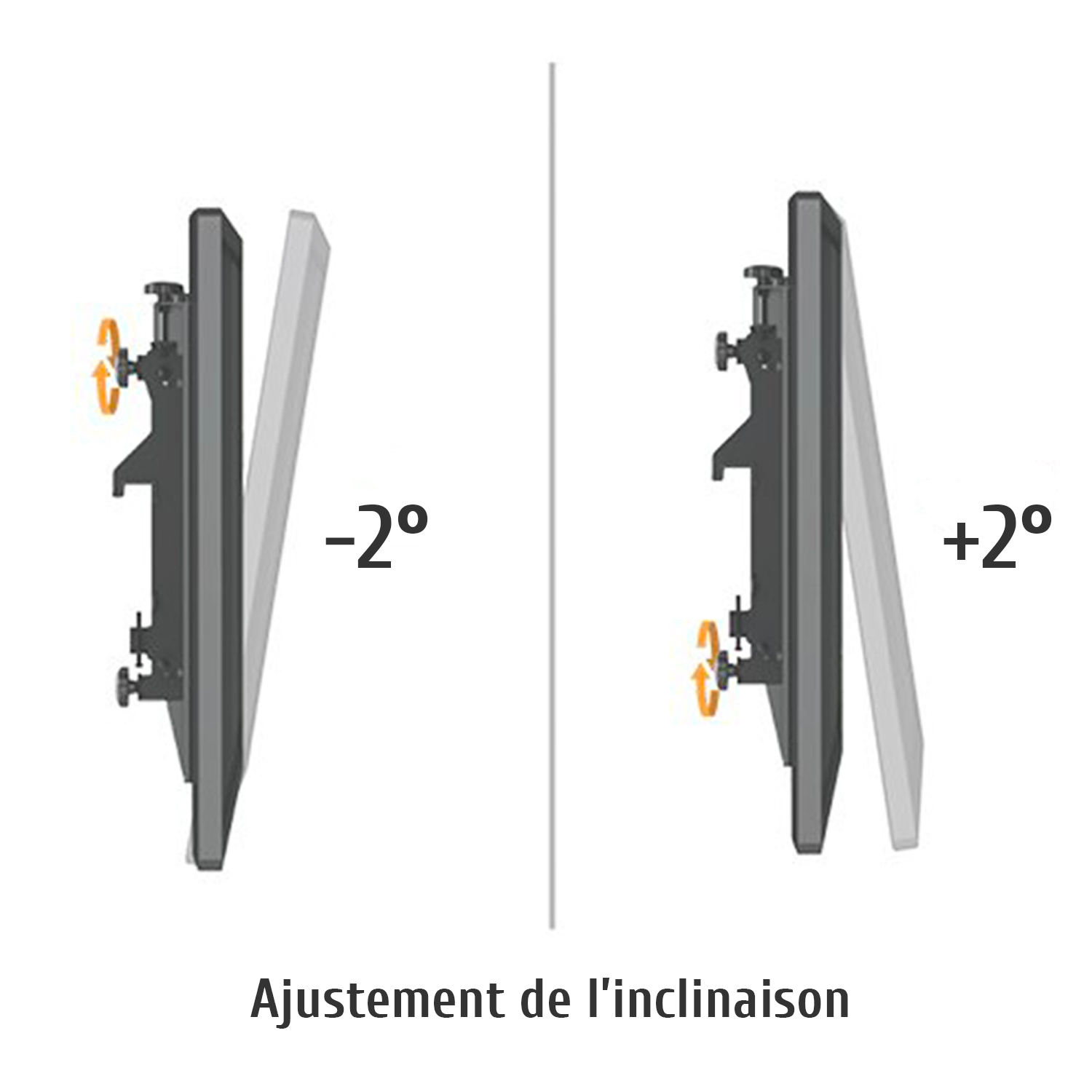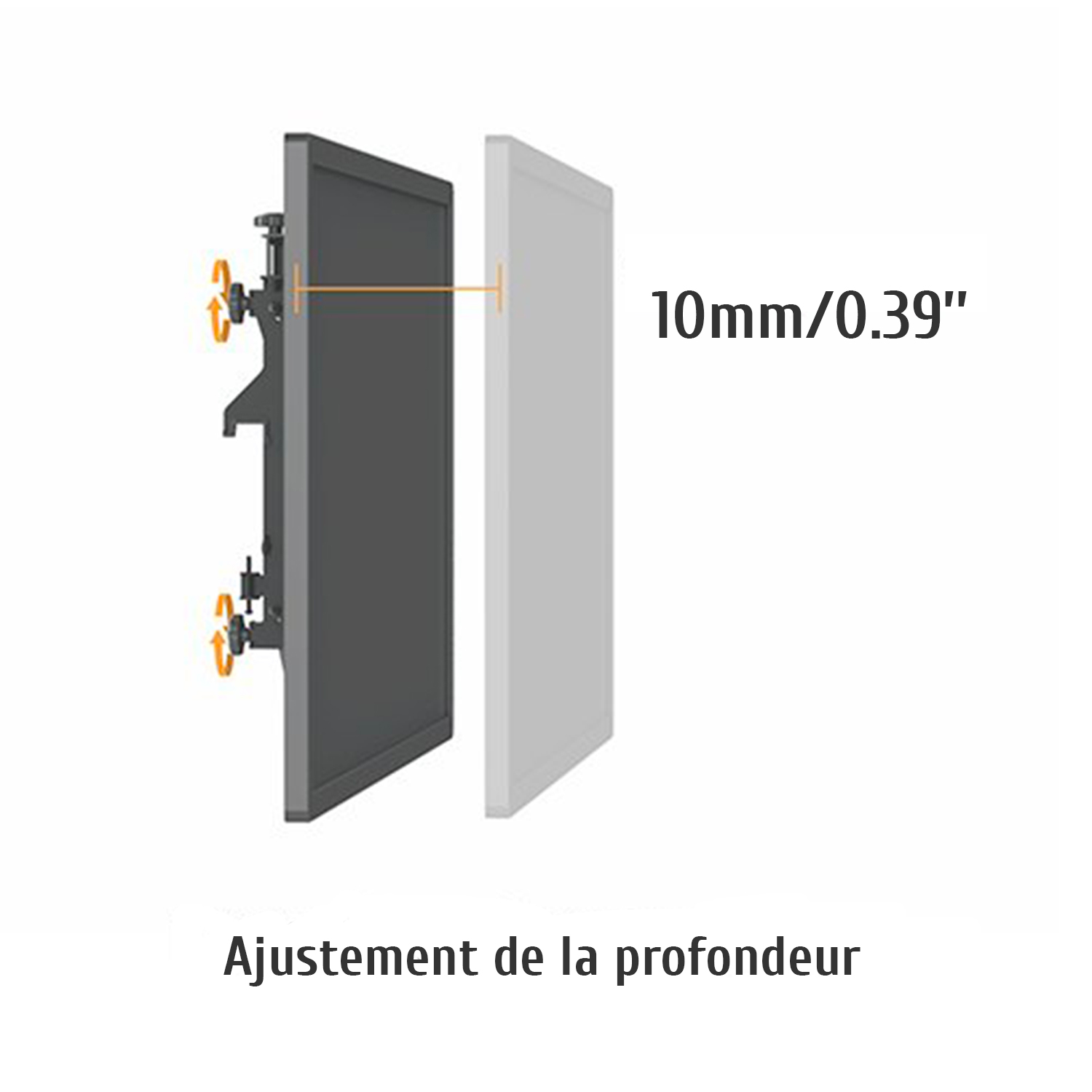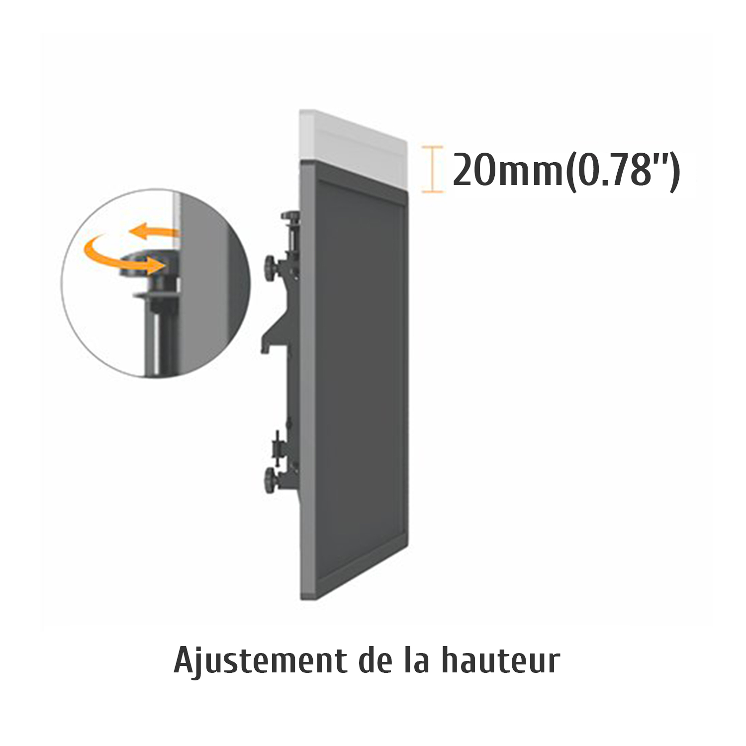 Possibilité d'ajuster la hauteur, la profondeur et l'inclinaison de chaque écran, grâce à un système efficace à molettes, pour constituer un mur d'images parfait et ainsi s'adapter à tous vos besoins.